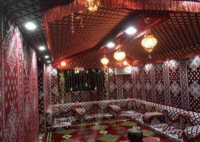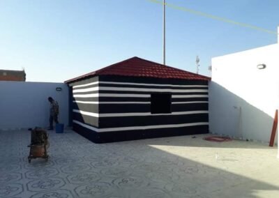 في أبراج المدينة للخيام والمظلات والسواتر، نقدم لكم خدمة تركيب بيت الشعر الذي يعتبر الخيار المثالي لمن يبحث عن تجربة سكنية فريدة ومريحة. يتميز بيت الشعر بتصميمه الملكي الذي يجمع بين الأصالة والرفاهية، مما يجعله مناسبًا لمجموعة متنوعة من الاستخدامات، سواء كانت فعاليات خارجية، أو مخيمات، أو حتى كمسكن مؤقت في الطبيعة. نحن نؤمن بأن كل عميل يستحق مساحة تعكس ذوقه الرفيع، ولذلك نقدم مجموعة متنوعة من خيارات بيت الشعر التي تلبي احتياجاتكم. يُعتبر بيت الشعر رمزًا للضيافة والكرم، حيث يتميز بتصميمه الفسيح وزخارفه التقليدية الجميلة، مما يوفر أجواءً مريحة ومناسبة للاجتماعات العائلية أو المناسبات الرسمية. نحن نستخدم مواد عالية الجودة في تصنيع بيت الشعر، مما يضمن لكم الاستدامة والمتانة. تتوفر لدينا خيارات متعددة من الأحجام والتصاميم، مما يتيح لكم اختيار ما يتناسب مع طبيعة الاستخدام واحتياجاتكم. فريقنا من المتخصصين ذوي الخبرة يقدم خدمة تركيب احترافية، حيث نبدأ بتقديم استشارة شاملة لفهم احتياجاتكم ورؤيتكم. نحن نأخذ قياسات دقيقة للموقع لضمان ملاءمة بيت الشعر بشكل مثالي، ونركز على التفاصيل لضمان أن تكون عملية التركيب آمنة وفعالة. نحن نستخدم تقنيات حديثة في عملية التركيب لضمان ثبات بيت الشعر وجودته، مما يوفر لكم بيئة مريحة وآمنة. تعتبر خدمة تركيب بيت الشعر مثالية للاستخدام في مجموعة متنوعة من الفعاليات. يمكن استخدامه في حفلات الزفاف، والمناسبات العائلية، والمعارض الثقافية، وحتى كمسكن مؤقت في المخيمات. بفضل تصميمه الملكي، يضفي بيت الشعر لمسة من الأناقة والفخامة على أي مناسبة، مما يجعلها نقطة جذب للضيوف ويخلق أجواءً مريحة وممتعة. نحن ندرك أهمية تقديم حلول فعالة من حيث التكلفة، لذا نحرص على توفير أسعار تنافسية تتناسب مع ميزانيات عملائنا. نحن نؤمن بأن كل عميل يستحق أفضل جودة، ولذلك نعمل جاهدين على تقديم بيت الشعر الملكي الذي يلبي توقعاتكم ويعزز من تجربتكم. في أبراج المدينة، نسعى لتقديم تجربة استثنائية لكل عملائنا، بدءًا من الاستشارة الأولية وحتى خدمة ما بعد التركيب. نحن هنا لدعمكم في كل خطوة على الطريق، مما يضمن أن تكونوا راضين تمامًا عن خدماتنا. اتصلوا بنا اليوم لتكتشفوا كيف يمكن لتركيب بيت الشعر الملكي أن يضيف لمسة من الفخامة والراحة إلى مناسباتكم، مما يضمن لكم تجربة لا تُنسى.